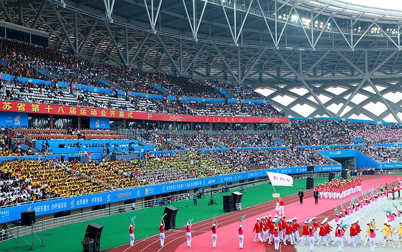 徐州市承辦的2014年第十八屆江蘇省運(yùn)動(dòng)會(huì)將在徐州新落成的奧體中心舉行,奧體中心總建筑面積23萬(wàn)平方米,分為入口廣場(chǎng)區(qū)、競(jìng)賽訓(xùn)練區(qū)、體育公園區(qū)、賓館接待區(qū)和生態(tài)景觀區(qū)。主要建筑包括一個(gè)3.5萬(wàn)座的體育場(chǎng)、一個(gè)2000座的游泳跳水館、一個(gè)球類館、一個(gè)2000座的綜合訓(xùn)練館和一個(gè)體育賓館。其中,球類館設(shè)6片網(wǎng)球場(chǎng)、52片羽毛球場(chǎng)、52片乒乓球場(chǎng),網(wǎng)球場(chǎng)設(shè)400個(gè)固定座位、羽毛球場(chǎng)設(shè)800個(gè)活動(dòng)座位;綜合訓(xùn)練館平時(shí)作為訓(xùn)練場(chǎng)所,賽時(shí)可以滿足熱身需要,還可以臨時(shí)搭建舞臺(tái)成為演藝中心。無(wú)線對(duì)講機(jī)信號(hào)要求覆蓋所有比賽用場(chǎng)館。