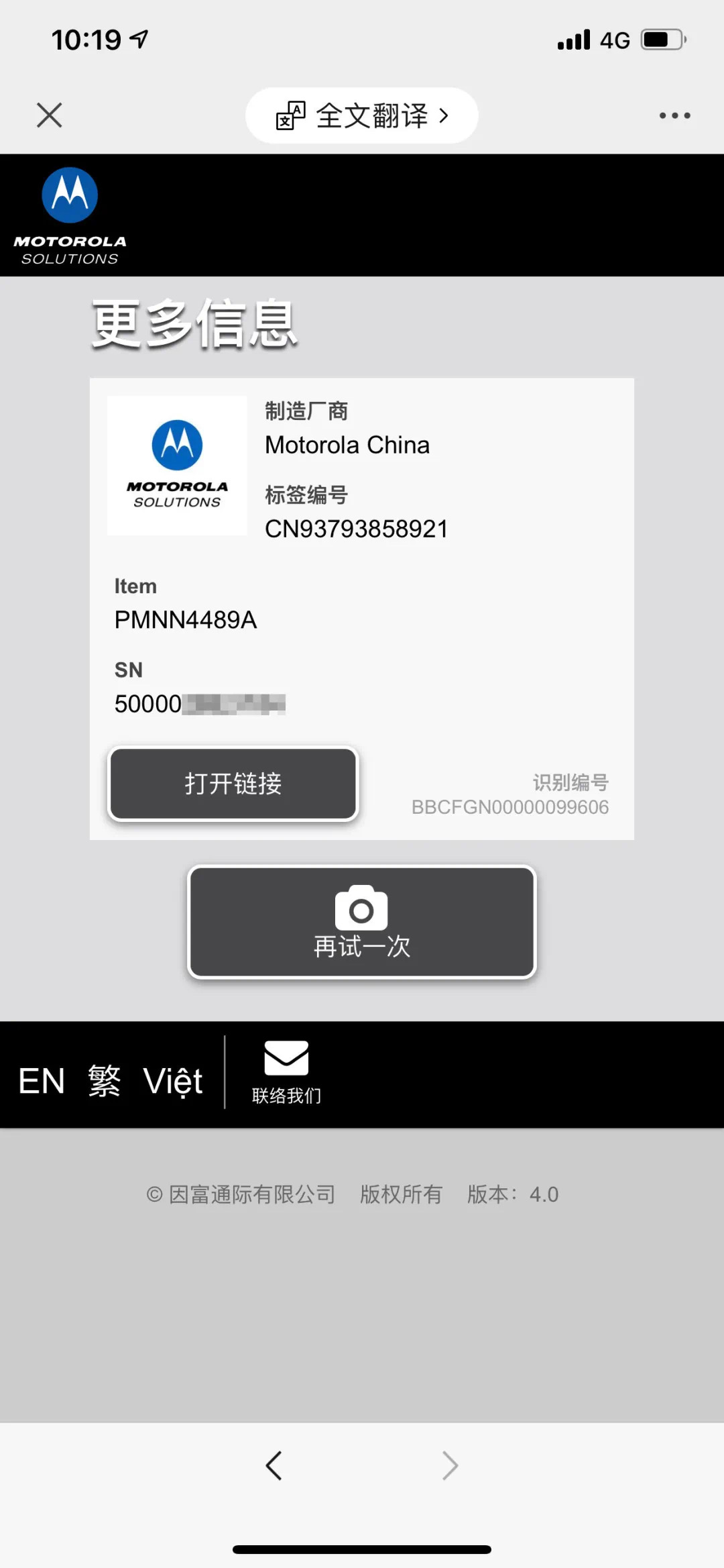 掃描防偽碼后,您可以獲得包含型號、序列號等豐富的產(chǎn)品信息;